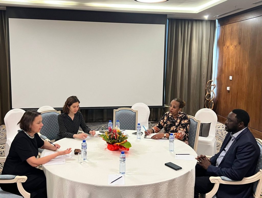 En marge de la rencontre de haut niveau sur la stratégie du Togo pour le Sahel tenue à Lomé, le Haut Représentant du Président de la Commission de l’UA et Chef de la MISAHEL, SE. Dr. Mamadou TANGARA a eu une rencontre d’échanges avec la délégation de la Fédération de Russie conduite par Mme Tatiana Dovgalenko, Directrice du Département du partenariat avec l’Afrique du Ministère des Affaires étrangères de la Russie, Coordinatrice du mécanisme de dialogue Russie-Confédération des États du Sahel. Les échanges ont essentiellement porté sur la situation au Sahel et sur le renforcement de la coopération entre la Russie et l’Union africaine.